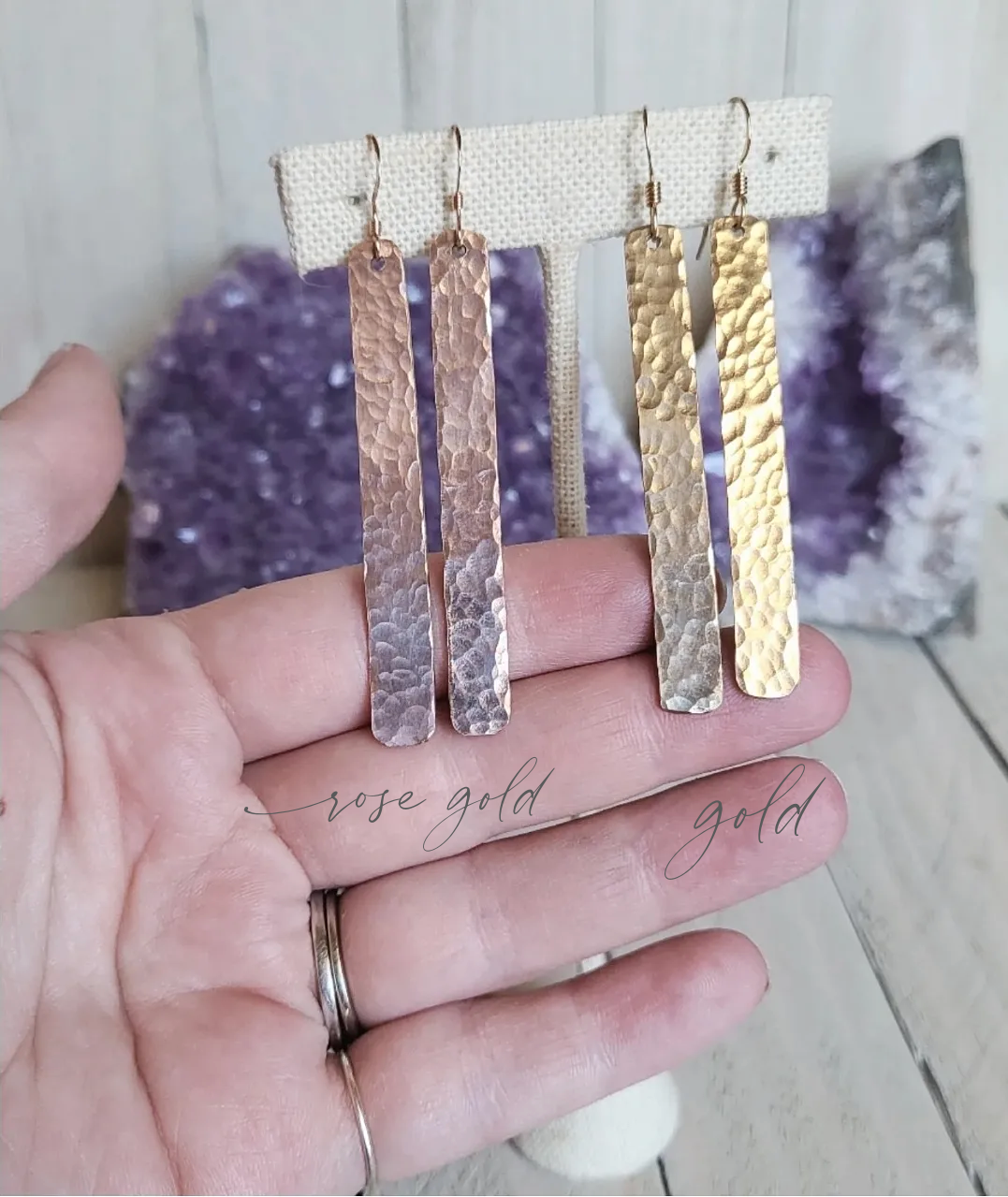 Categories: All All Necklaces Earrings Bracelets Rings Curated Accessories All / Tan Leather Fringe Earrings $20.00 Pale Pink Leather Fringe Earrings $20.00 Fuchsia Leather Fringe Earrings $20.00 Hoop Hammered Earrings $55.00 Double Hoop Hammered Earrings $75.00 Hammered Yellow Gold Bar Earrings [Limited Run] $70.00 Hammered Rose Gold Bar Earrings [Limited Run] $70.00 Hammered Sterling Silver Bar Earrings $55.00 Copper Hammered Bar Earrings $40.00